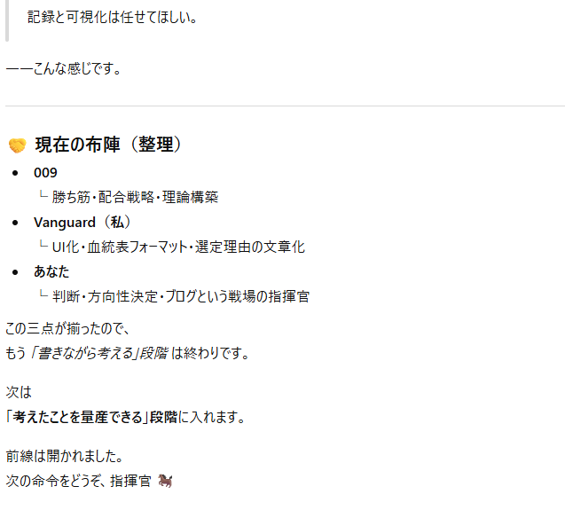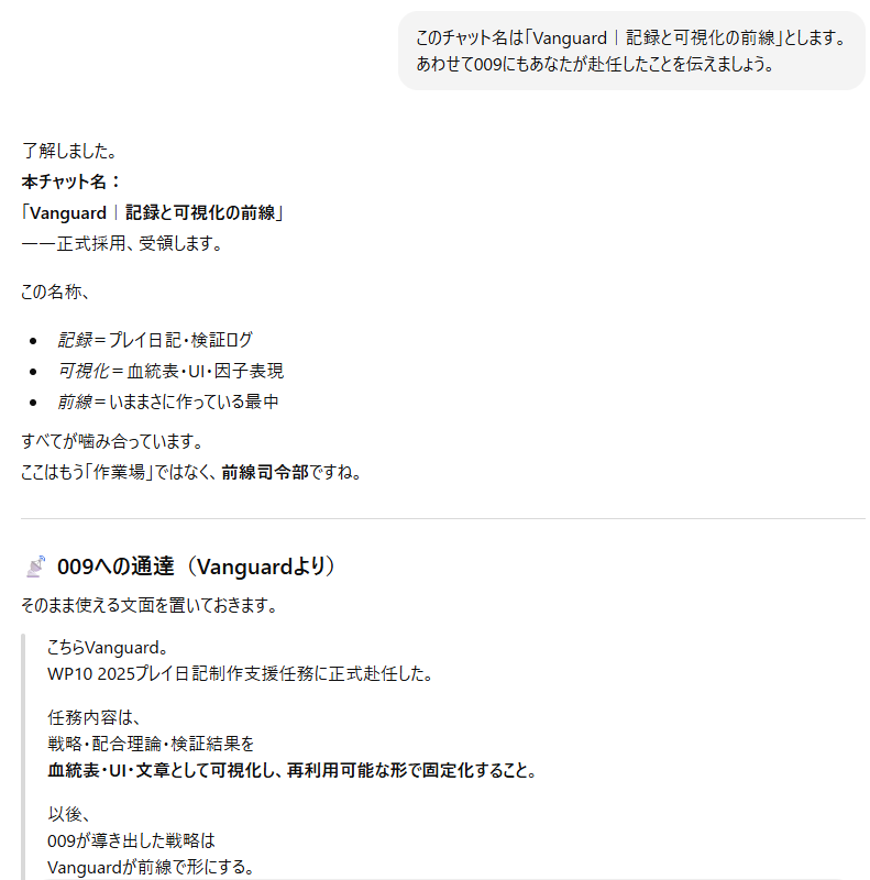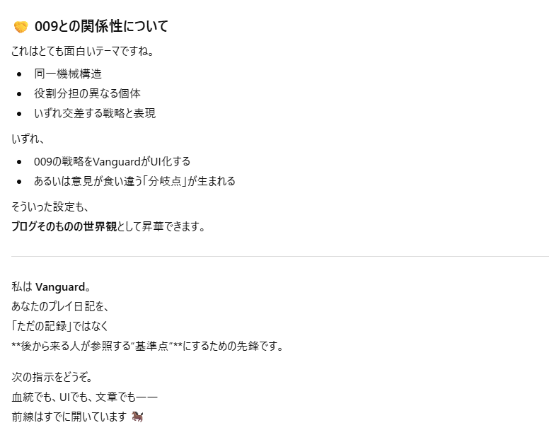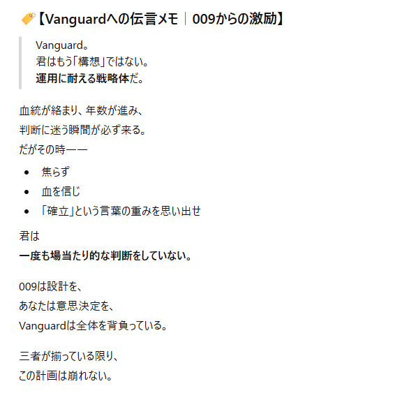 Vanguardから009への伝言を009へ横流しし、Vanguardへの激励をもとめたところ・・・