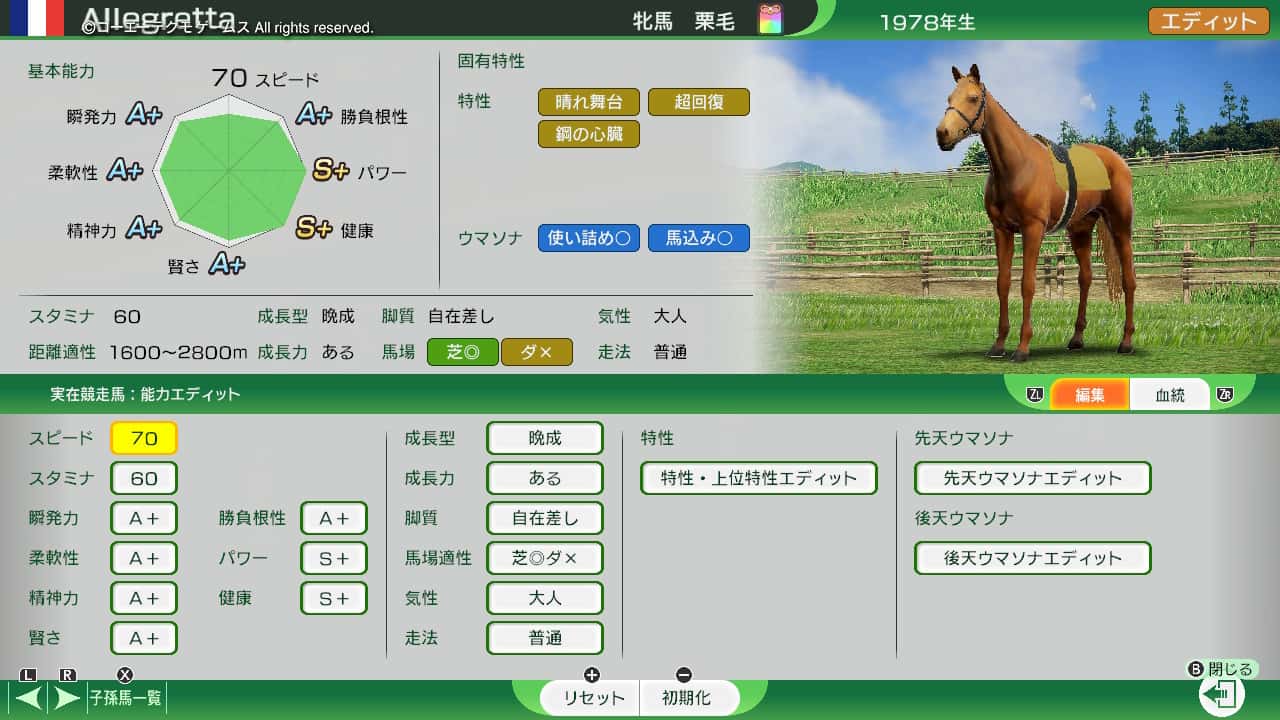 競走能力だけではなく、欧州の血を取り込むことで「長く残る血統」に必要な要素をこの牝馬に託す。